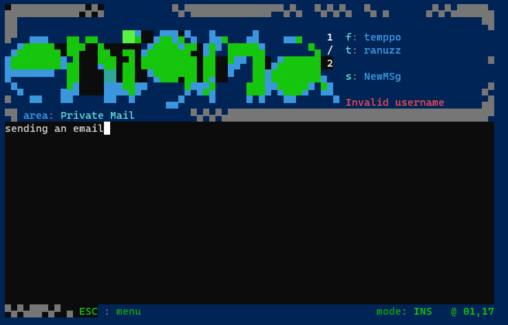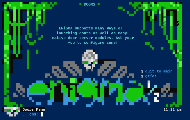I’ll write some more about BBS, FidoNet, email and IRC but this post is about my experience running enigma-bbs.